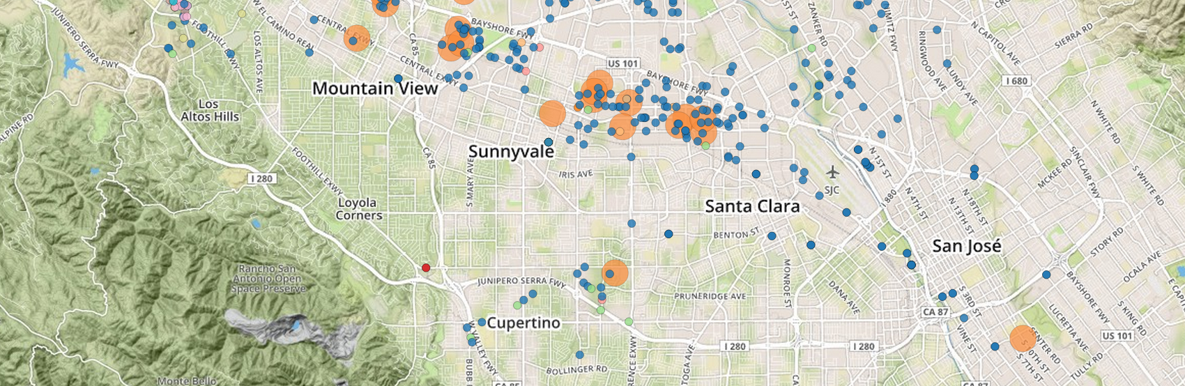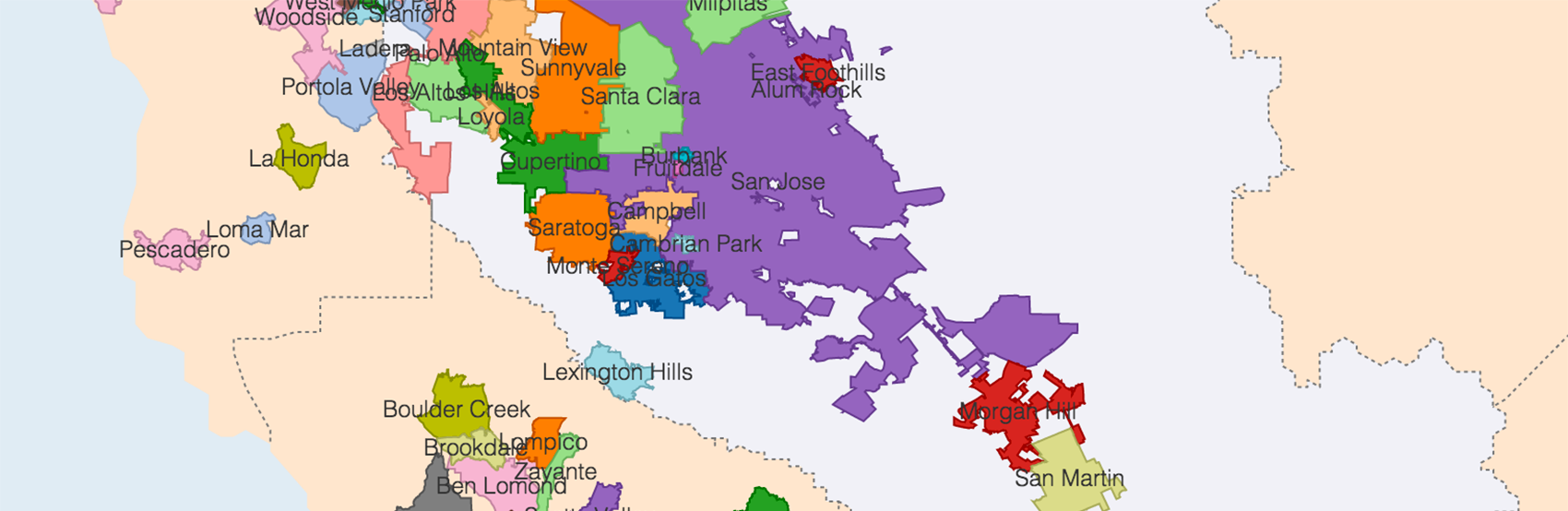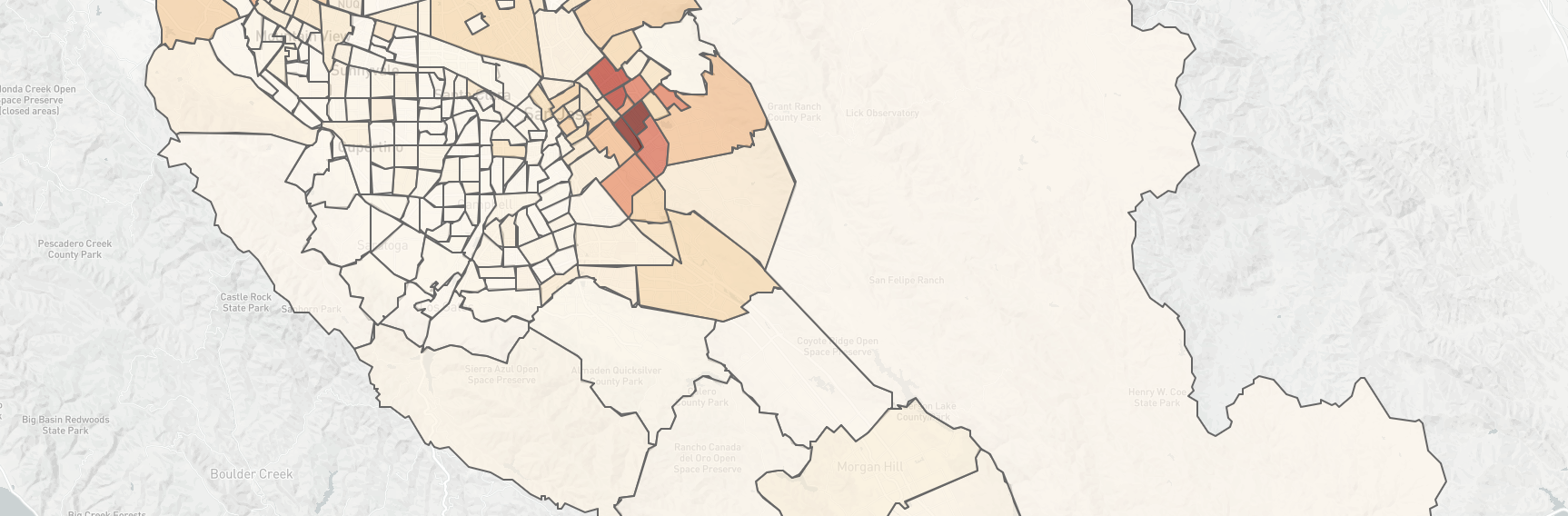 The protected lands of Santa Clara County are administered by various local, regional, and federal agencies. The interactive map shows which areas of the land are administered by particular agencies.